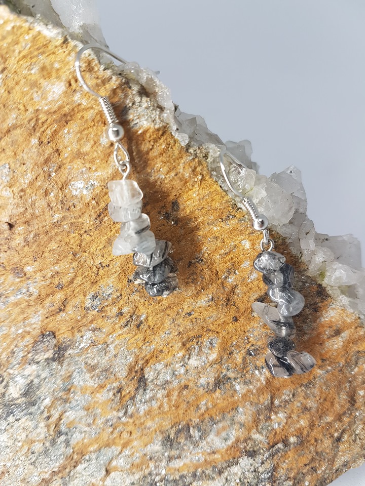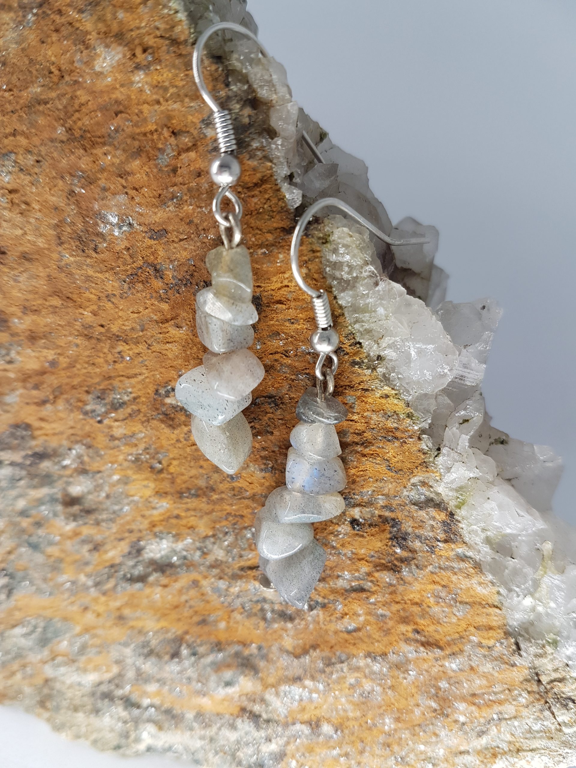 Boucles d’oreilles en éclats de pierres naturelles.