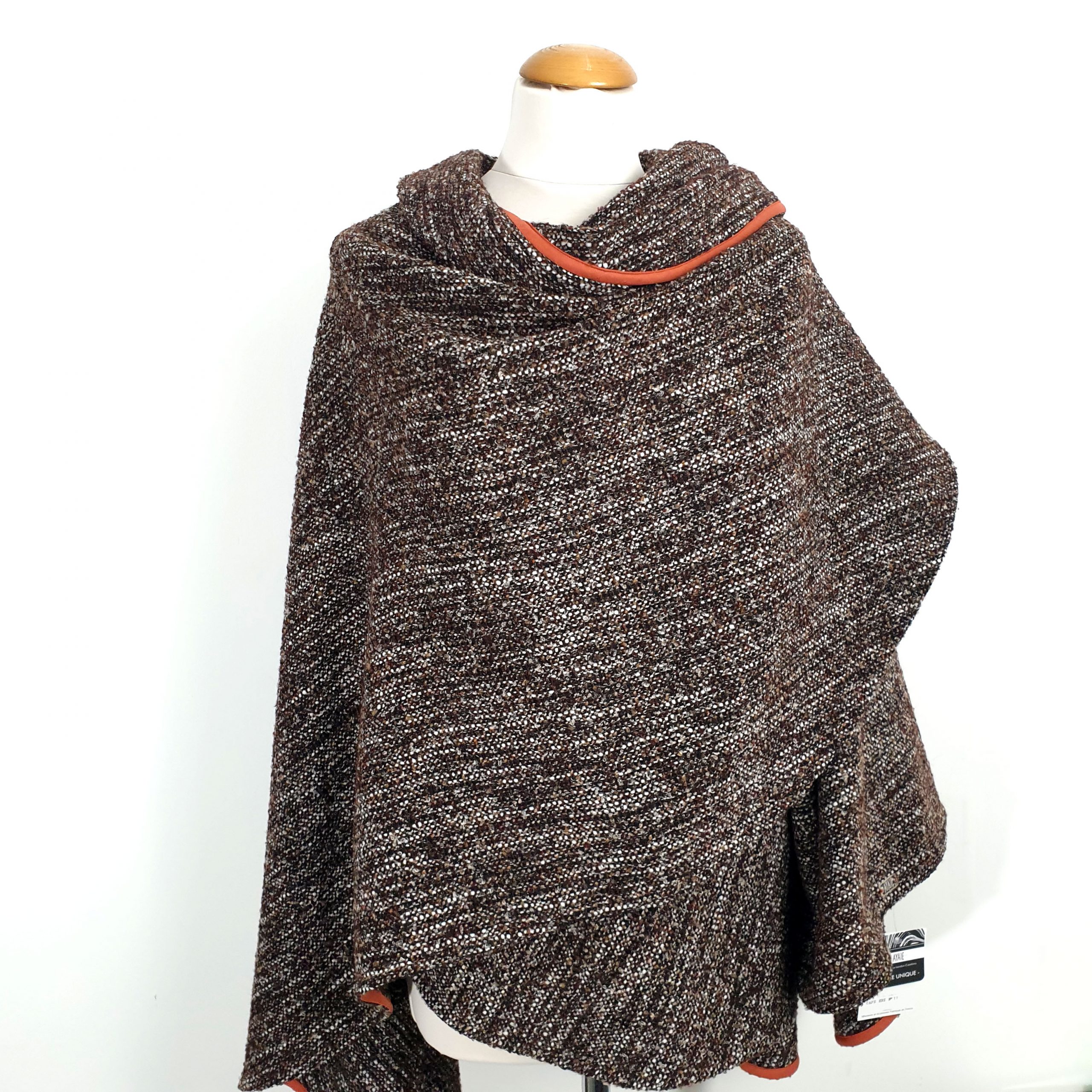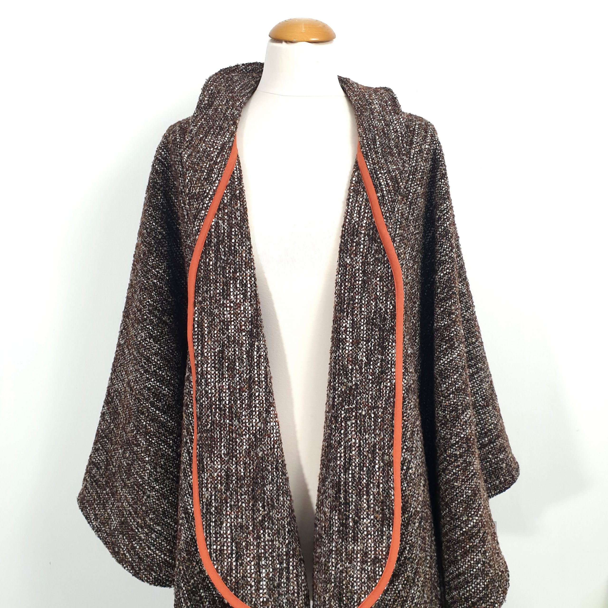 Elle se porte de plusieurs façons : ouverte à l’avant avec ses pans rabattus, un pan jeté sur l’épaule, croisés devant avec une ceinture dans un esprit kimono, attachée avec une jolie broche, etc…