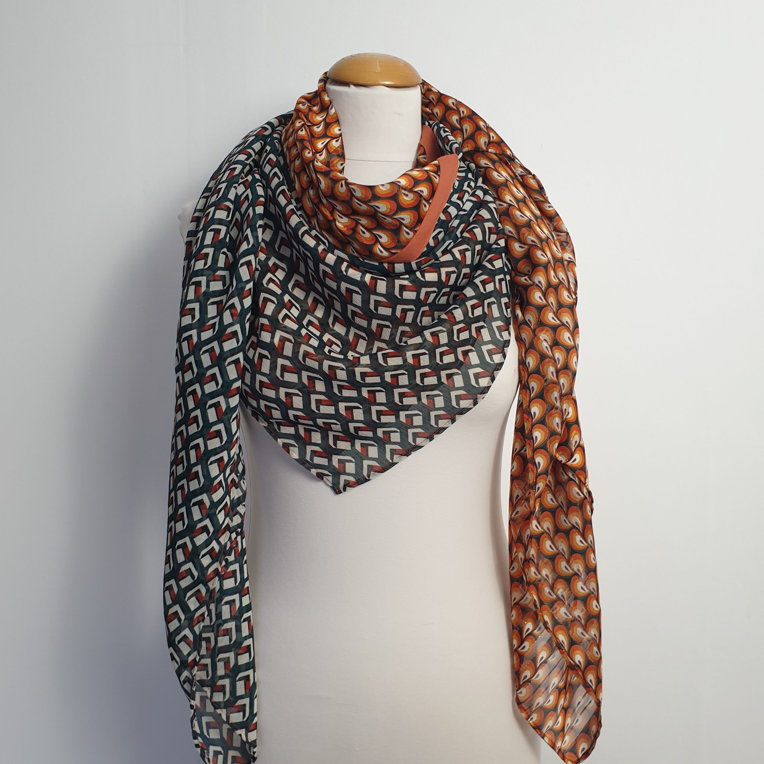 Vous pourrez ainsi changer de look selon votre tenue en choisissant de le porter en triangle avec le motif de votre choix, ou de façon traditionnelle, noué ou jeté sur l’épaule par exemple.