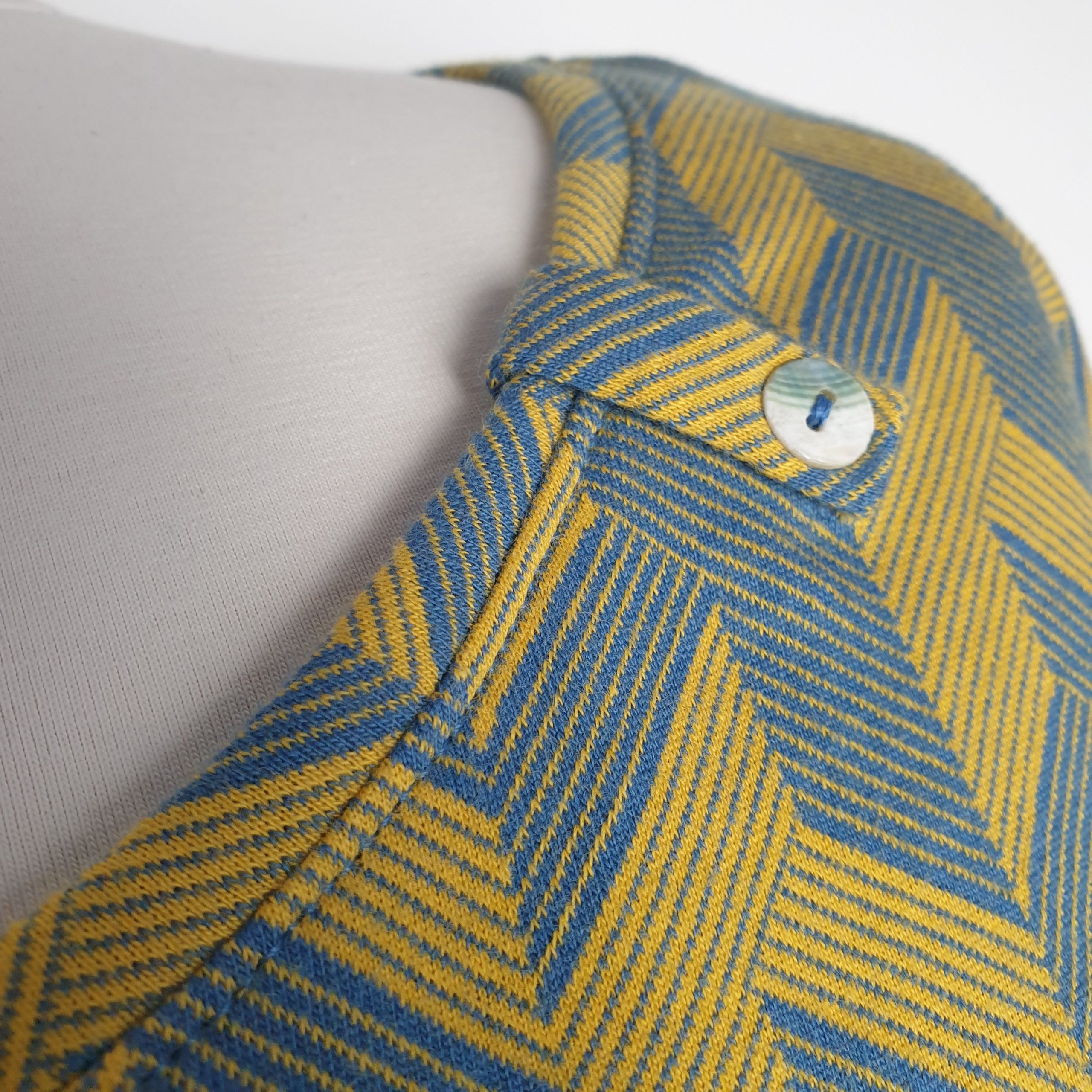 Voici ses caractéristiques : manche 3/4, grand col rond, un détail de finition qui change sur chaque modèle (couleur et/ou emplacement des boutons, galons dans le dos, etc)