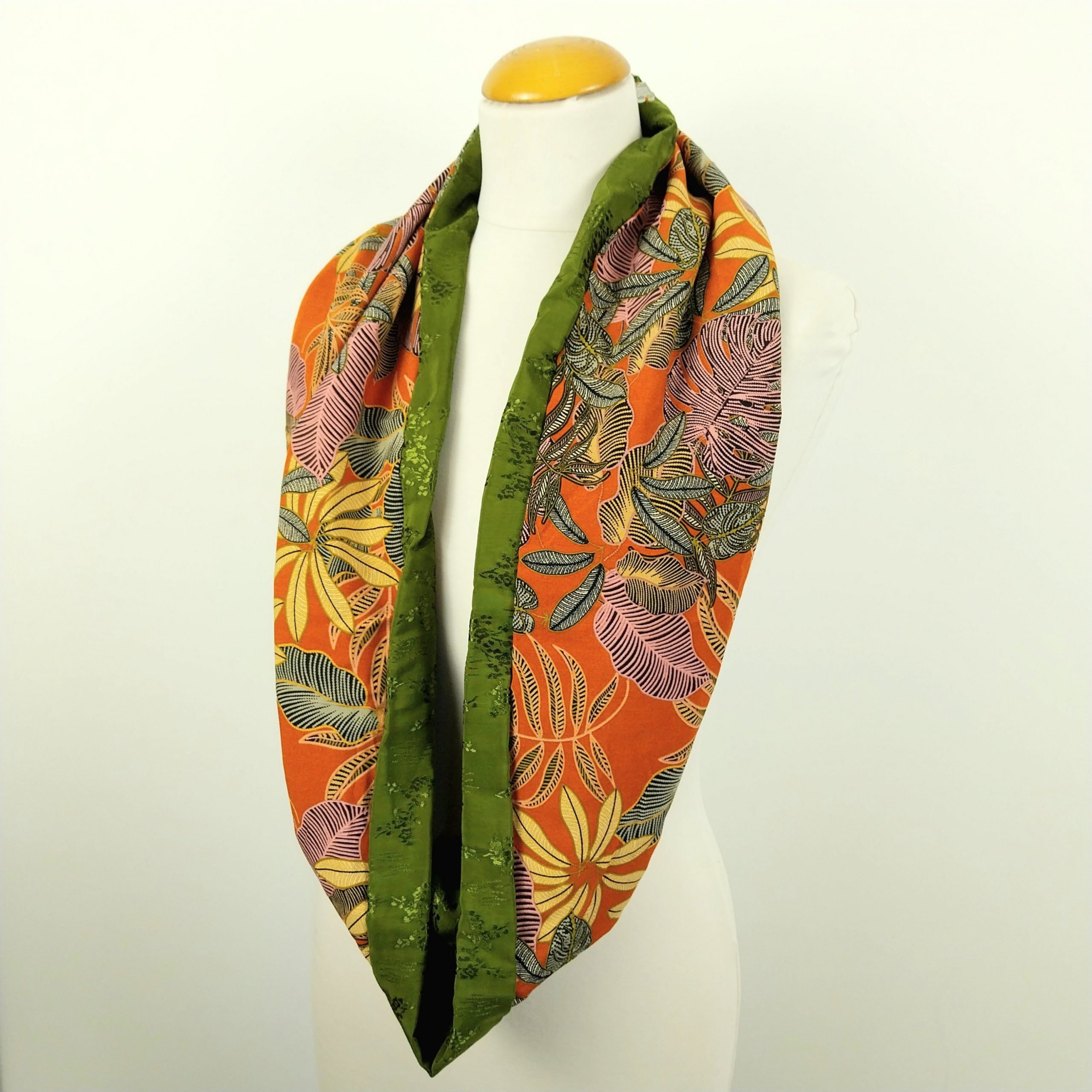 Ce snood est produit à 50% à partir de tissus issus de fins de séries textiles européens dans un esprit d’upcycling.
